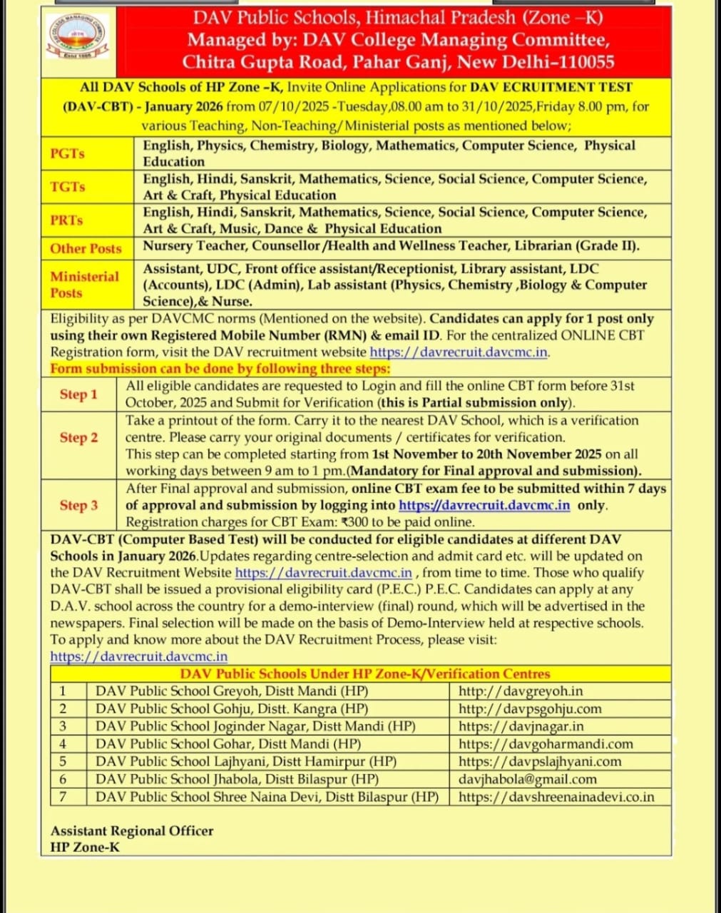 CLICK HERE TO SEE THE DETAILS OF : DAV STAFF RECRUITMENT: PHASE-3 (Demo & Interview)
